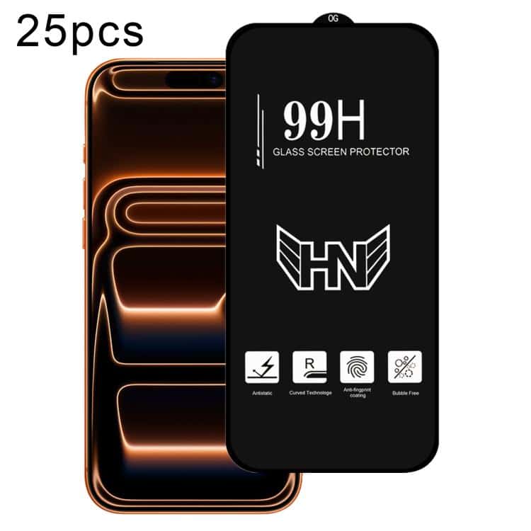 25 Stück Hochaluminium-Großbogen-Vollbild-Hartglasfolie, For iPhone 16 Pro Max, For iPhone 16 Pro, For iPhone 16 Plus, For iPhone 16, For iPhone 15 Pro Max, For iPhone 15 Pro, For iPhone 15 Plus, For iPhone 15