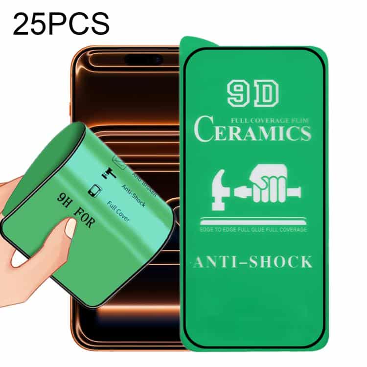 25 Stück 9D Vollbild-Vollkleber-Keramikfolie, For iPhone 16 Pro Max, For iPhone 16 Pro, For iPhone 16 Plus, For iPhone 16, For iPhone 15 Pro Max, For iPhone 15 Pro, For iPhone 15 Plus, For iPhone 15