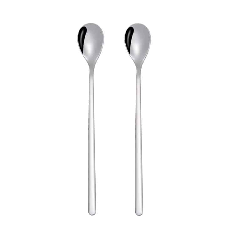 2 Stück Regenbogen-Langstiel-Kaffeelöffel aus Edelstahl mit langem Griff, Kaltgetränk-Rührlöffel für Dessert, Kuchen, Round Spoon, Sharp Spoon