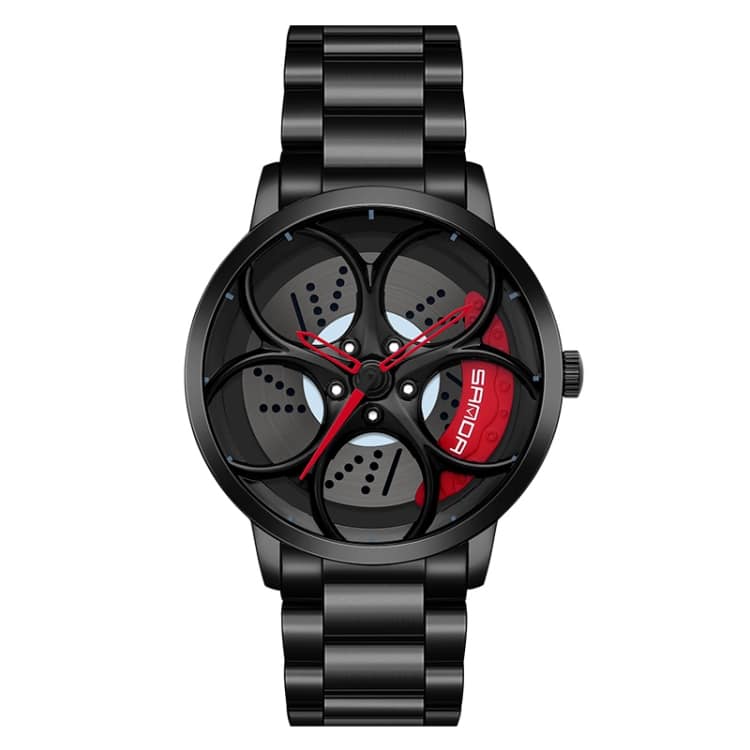 SANDA P1065 Wheel Series Lässige Stahlband-Quarzuhr für Herren