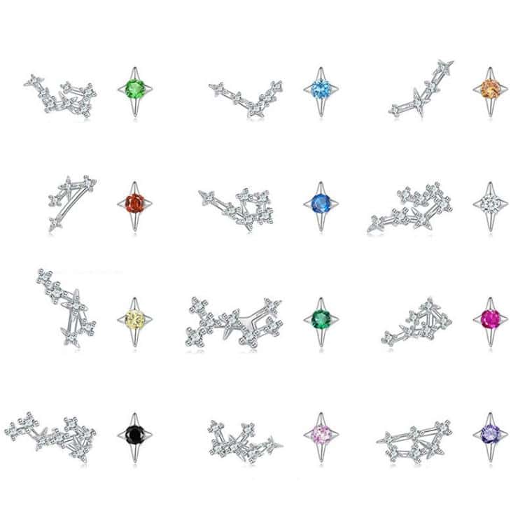 S925 Sterling Silver Inlaid Zircon Twelve Constellation Earrings