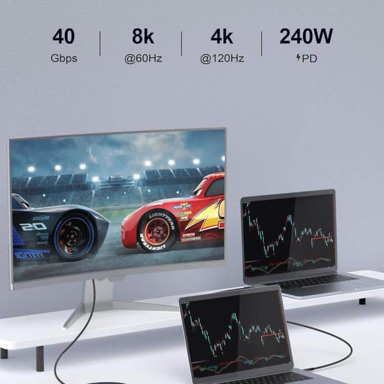 QGeeM USB4 Type-C PD 240W Fast Charging Cable With Digital Display, 40Gbps Data Transfer, 8K 60Hz Video Output For Laptop/Phone/Tablet