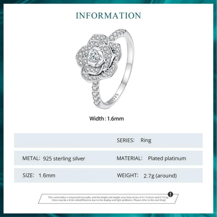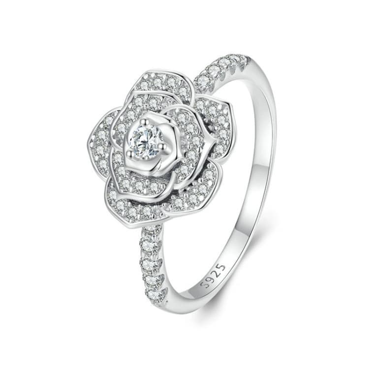 S925 Sterling Silber weiß vergoldet Zirkon Rose Ring Handdekoration