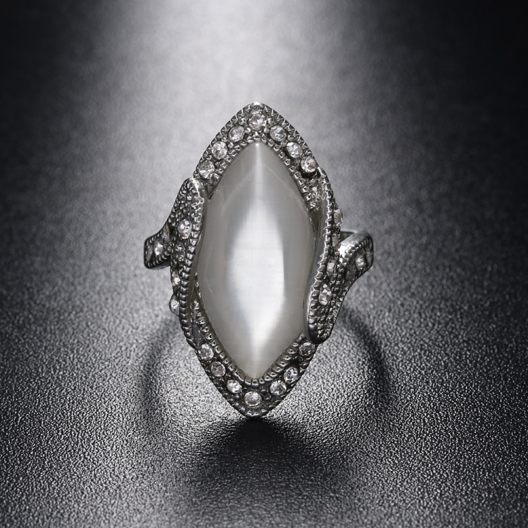 Weißer Opalring für Damen, Verlobungsringe mit Kristallen