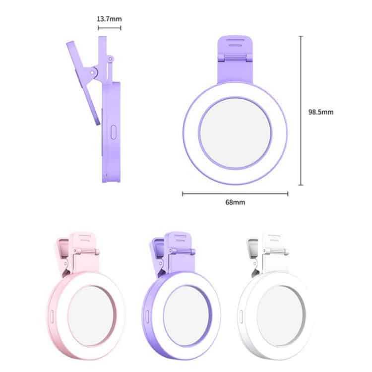 Foldable Clip-type Mobile Phone Rear Selfie Mirror Fill Light, White, Purple, Pink, White with Remote Control, Purple with Remote Control, Pink with Remote Control