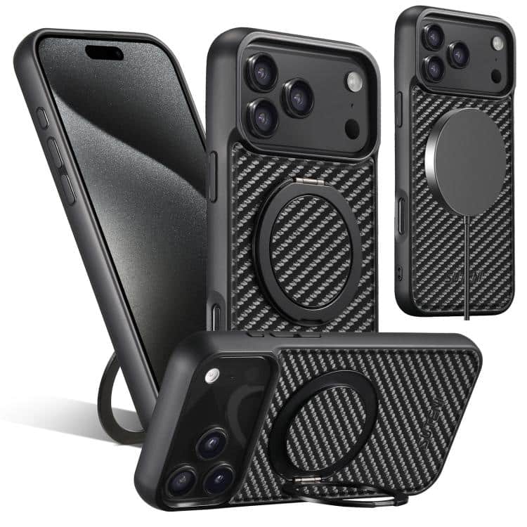 Suteni G3 Kohlefaser-Leder 360 Rotationshalter MagSafe Telefonhülle, For iPhone 16 Pro Max, For iPhone 16 Pro, For iPhone 16 Plus, For iPhone 16, For iPhone 15 Pro Max, For iPhone 15 Pro, For iPhone 15 Plus, For iPhone 15, For iPhone 14 Plus…