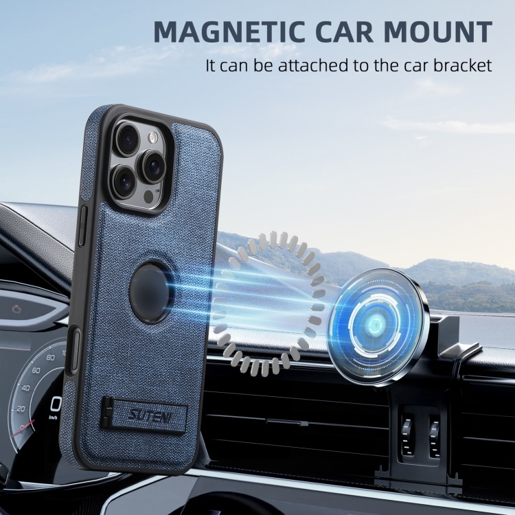 Suteni G2 Holder MagSafe-Telefonhülle aus Denim-Leder mit Rückseite, For iPhone 16 Pro Max, For iPhone 16 Pro, For iPhone 16 Plus, For iPhone 16, For iPhone 15 Pro Max, For iPhone 15 Pro, For iPhone 15 Plus, For iPhone 15