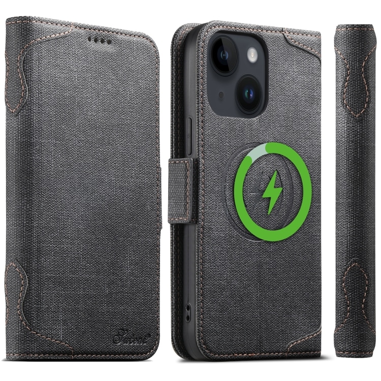 Suteni J07 Multifunktionale horizontale MagSafe Denim-Leder-Telefonhülle, For iPhone 16 Pro Max, For iPhone 16 Pro, For iPhone 16 Plus, For iPhone 16, For iPhone 15 Pro Max, For iPhone 15 Pro, For iPhone 15 Plus, For iPhone 15