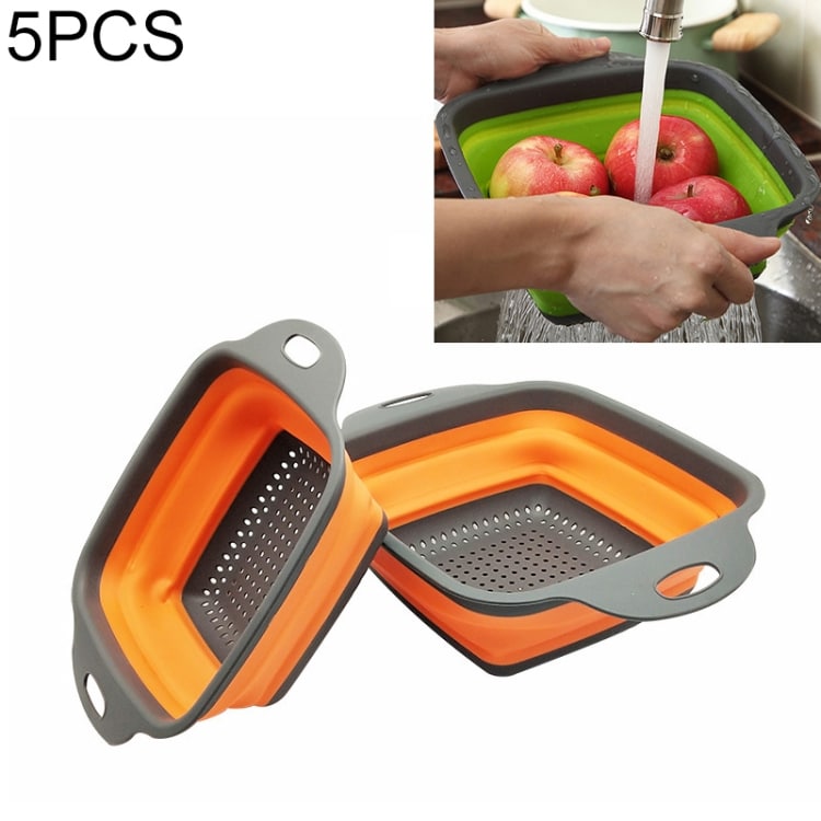 5 Sets quadratischer faltbarer Abflusskorb-Set für Küche, Silikon, Obst und Gemüse, einziehbarer Filter, Spezifikation: klein + groß