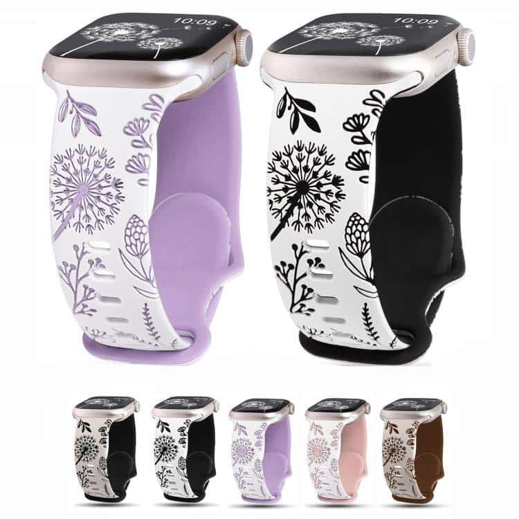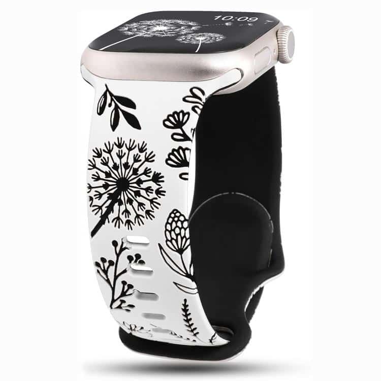 Two Color Dandelion Engraved Silicone Watch Band, For Apple Watch 46mm / 49mm / 45mm / 44mm, For Apple Watch 42mm / 41mm / 40mm / 38mm