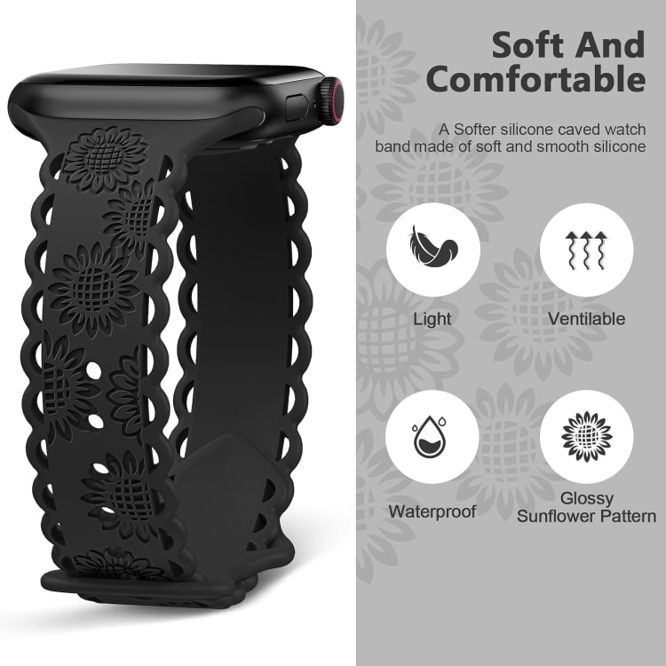 Uhrenarmband aus Silikon mit Spitzenprägung und Sonnenblumenmotiv, For Apple Watch SE 2023 44mm, For Apple Watch SE 2023 40mm, For Apple Watch Ultra 2 49mm, For Apple Watch Series 9 45mm