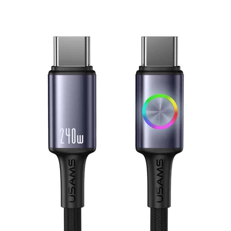 USAMS SJ751 240W Type-C to Type-C Aluminum Alloy Data Cable with Colorful Light, Length: 1.2m