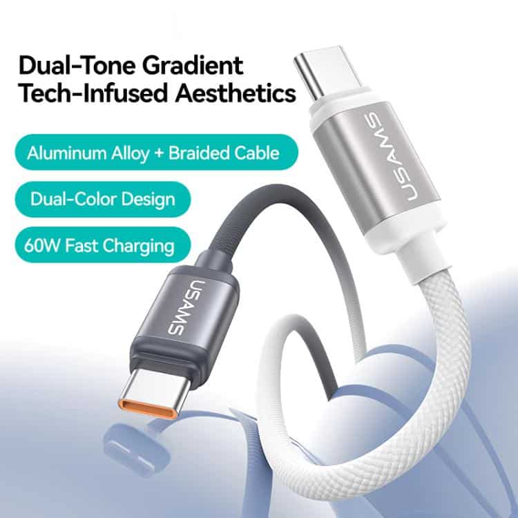 USAMS SJ756 Type-C to Type-C 60W Dual Color Aluminum Alloy Fast Charging Data Cable