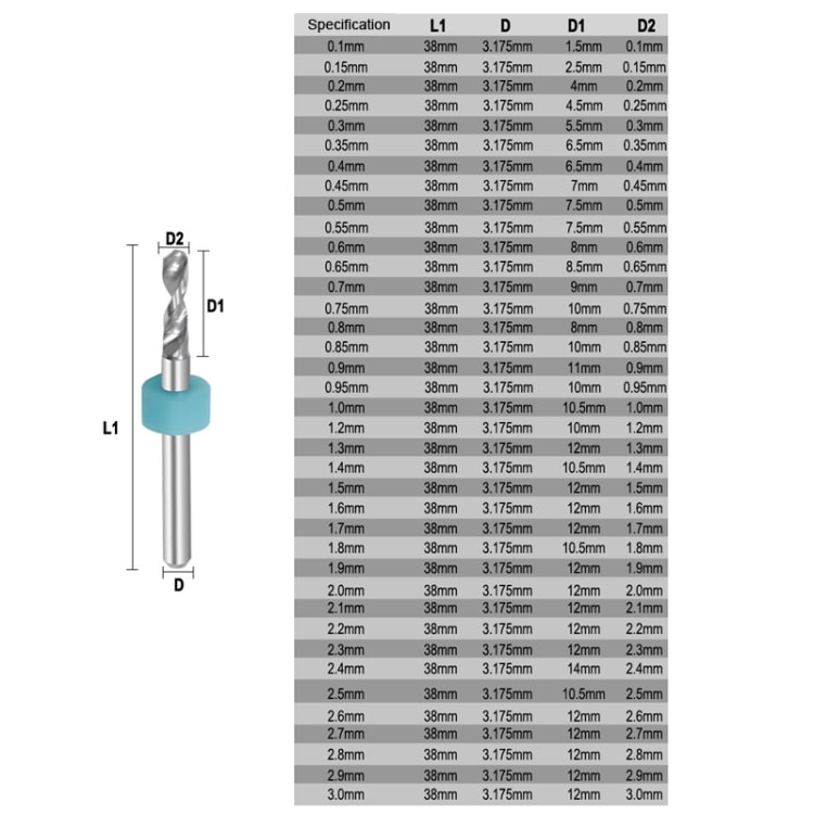 10-in-1 PCB-Wolframstahlbohrer, Schnitz-Miniaturbohrer, Größe:, 0.1-1mm, 0.6-1.5mm, 1.1-2mm, 1.5-2.4mm, 2.1-3.0mm