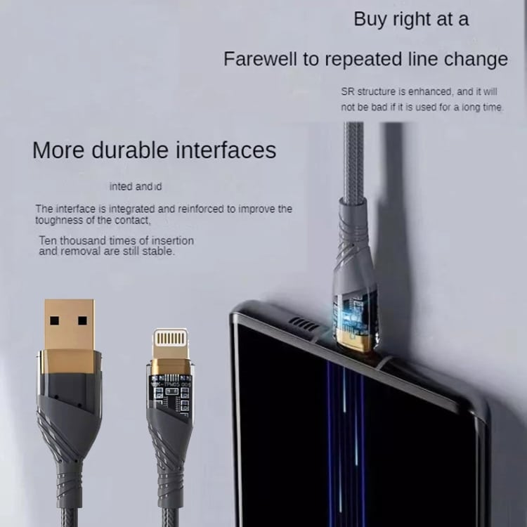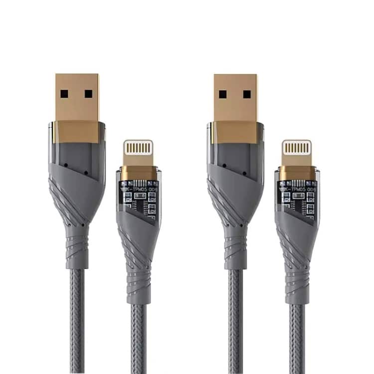2 Stück 2,4 A USB auf 8 Pin transparentes Schnelllade-Datenkabel, Länge: 1 m