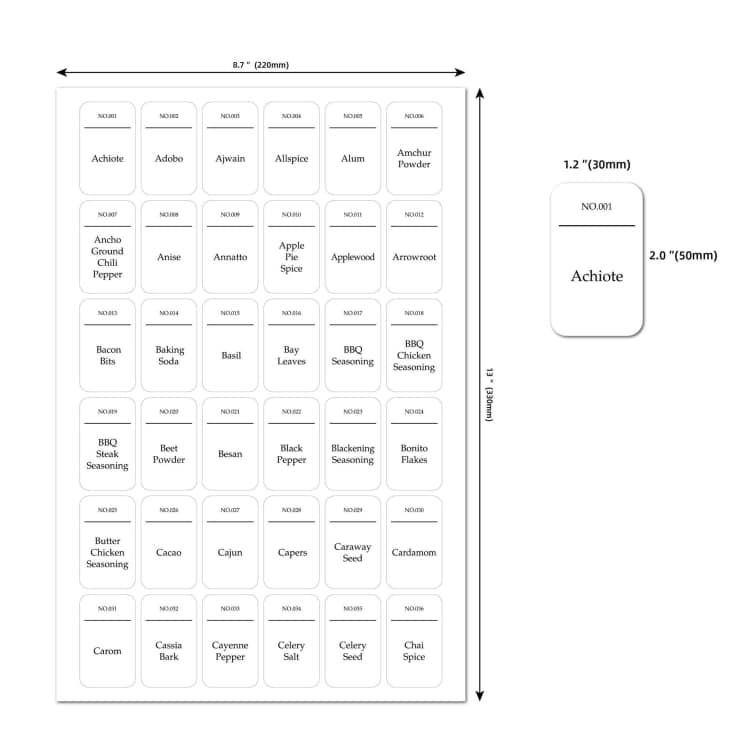 216 Stück Gewürzglas-Etikettenaufkleber, wasserfest, ölbeständig, Küchengewürzglas-Etikett