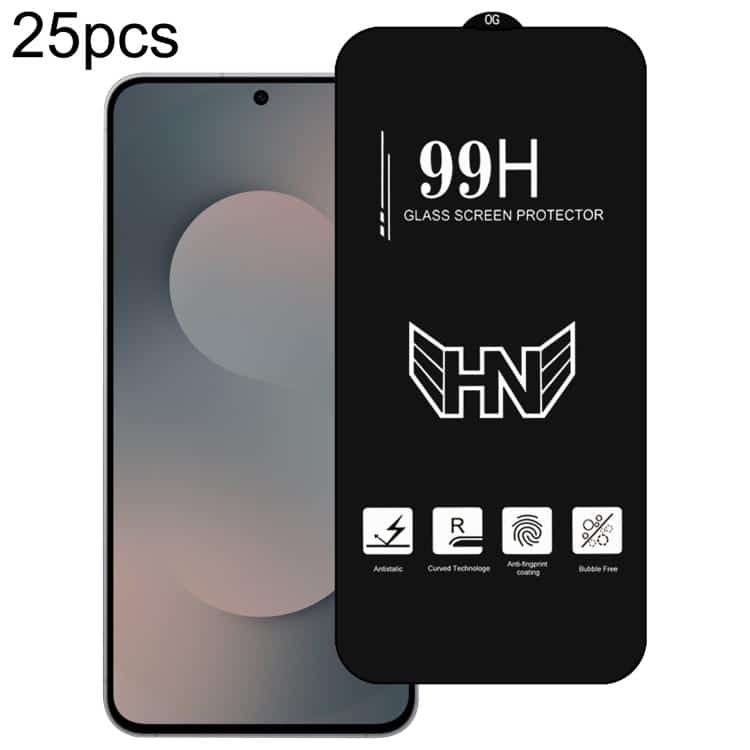 25 Stück 0,18 mm hohe Aluminiumfolie mit großem Bogen im Vollbildmodus aus gehärtetem Glas, unterstützt das Entsperren per Fingerabdruck, For Samsung Galaxy S25 5G, For Samsung Galaxy S25+ 5G, For Samsung Galaxy S25 Ultra 5G…