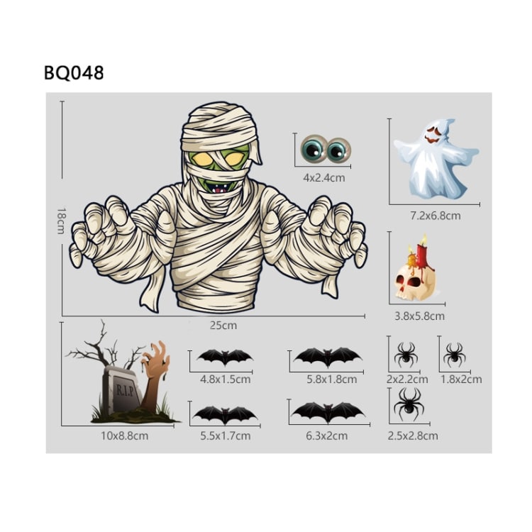 3 Sets Halloween-Dekorationsaufkleber, Kürbislampe, Spinnengeist, elektrostatische Aufkleber, Stil:, BQ040ABCD-45-46-47-48, BQ040ABCD-50-51, BQ041-42-43-44, BQ41-42-43-44-47-48, BQ049 + 050 + 052, BQ049 + 50 + 51 + (52 x 2), BQ049-51-52