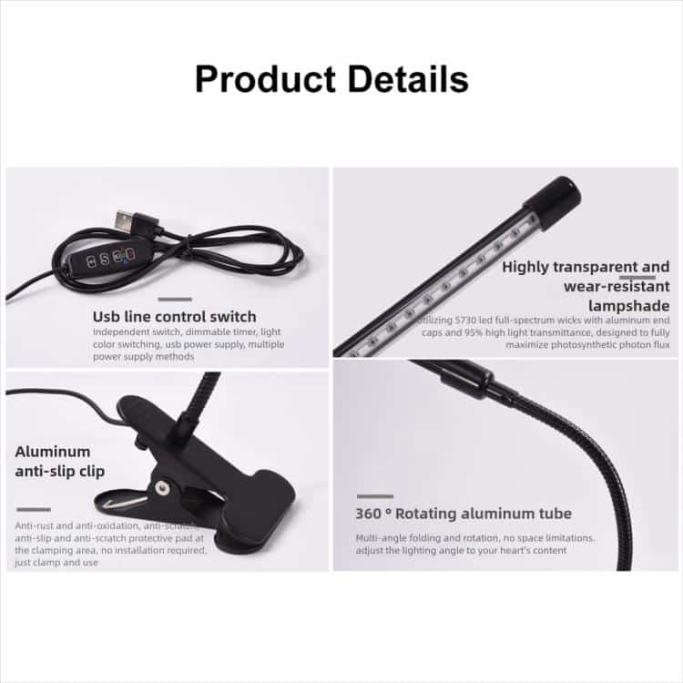 Preisspanne: CHF 8.00 bis CHF 13.60LED-Pflanzenwachstumslampe, USB-Fernbedienung, Clip, wasserdicht, volles Spektral-Naturweiß, Sämling-Pflanzlicht, 15W One Head, 30W Two Head, 45W Three Head, 60W Four Head
