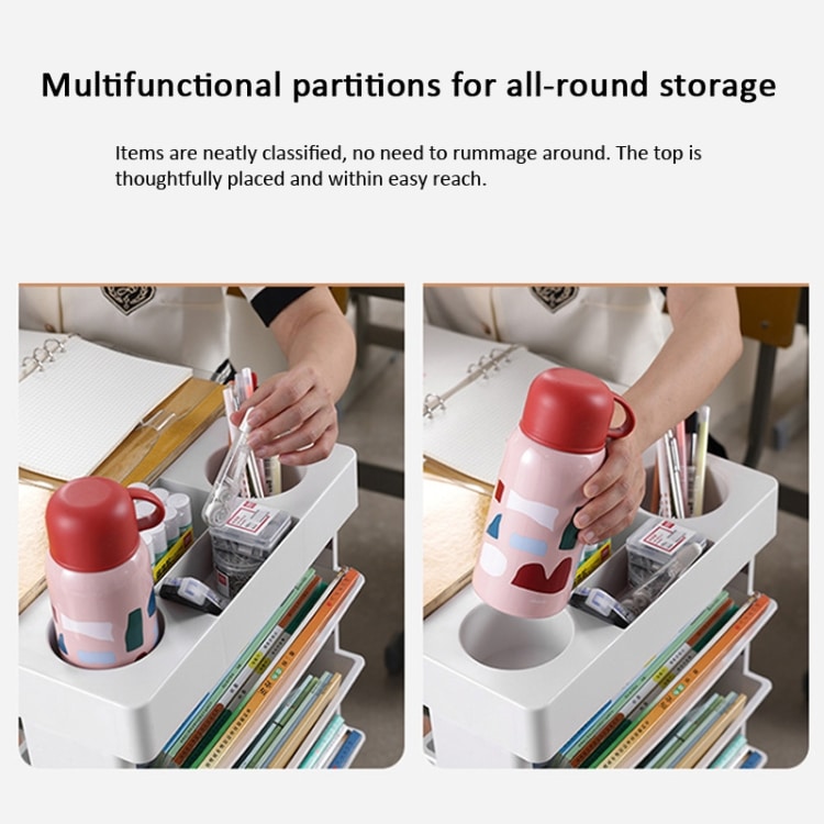 5-lagiger beweglicher Trolley-Aufbewahrungsständer aus Kunststoff für vertikale Bücherregale für Studentenbücher