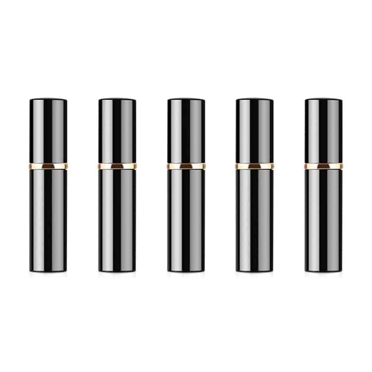 5 Stück tragbare, nachfüllbare Mini-Glas-Parfüm-Feinnebel-Zerstäuber mit metallischer Außenseite, 5 ml