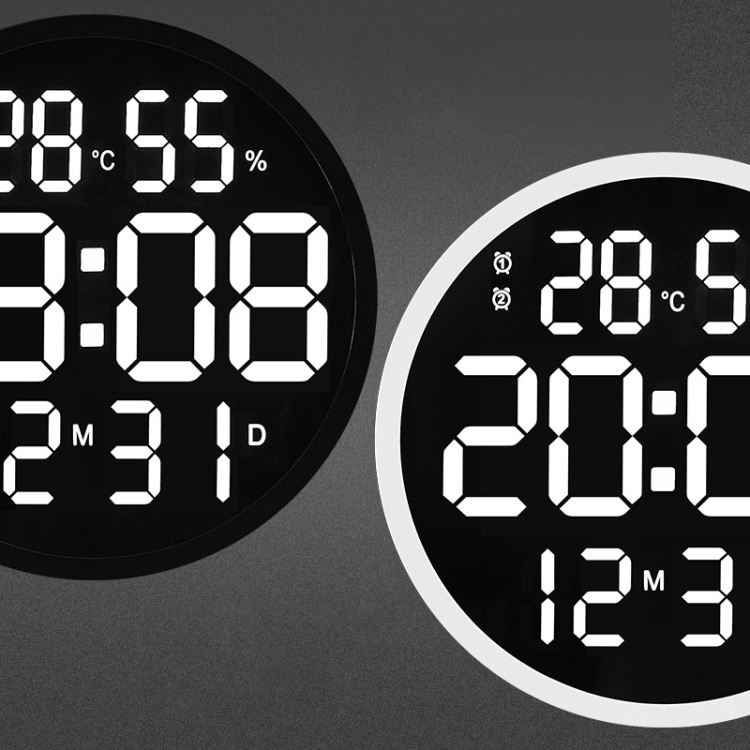 6620 12 Zoll LED Einfache Wanduhr Wohnzimmer Runde Stille Digitale Temperatur Und Luftfeuchtigkeit Elektronische Uhr, White Frame EU Plug, Black Frame EU Plug, White Frame US Plug, Black Frame US Plug