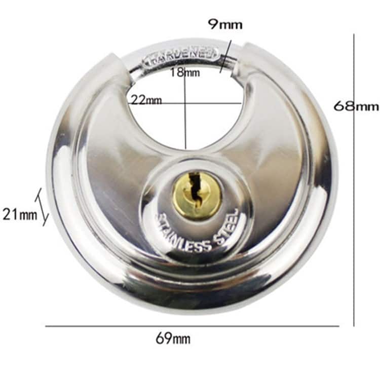 70mm Edelstahl Rundschloss Lager Türschloss Kettenschloss Fahrrad Anti-Diebstahl-Schloss