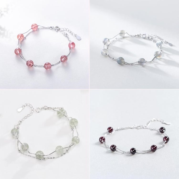 925 Sterling Silber Armband Damen Kristall Armband Naturperlen Doppelschichtiger Schmuck