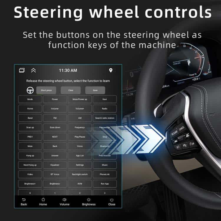 18. Unterstützt Handy-Anbindung, Rückfahrkamera (Kamera vorinstalliert), Video-Wiedergabewarnung, Lenkradsteuerung (Tastenlernfunktion), USB-Schnittstelle (USB 2.0 hinten), Fahrtenschreiber (USB-Signaleingang, Recorder vorinstalliert), Reset-Taste