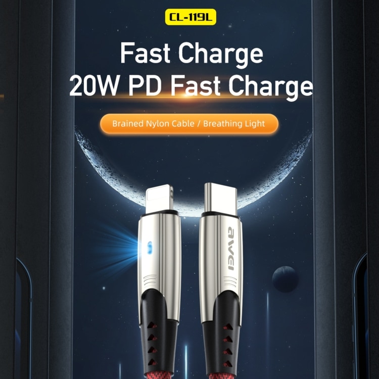 awei CL-119L Typ-C / USB-C auf 8-poliges Nylongeflecht-Schnellladekabel, Länge: 1 m