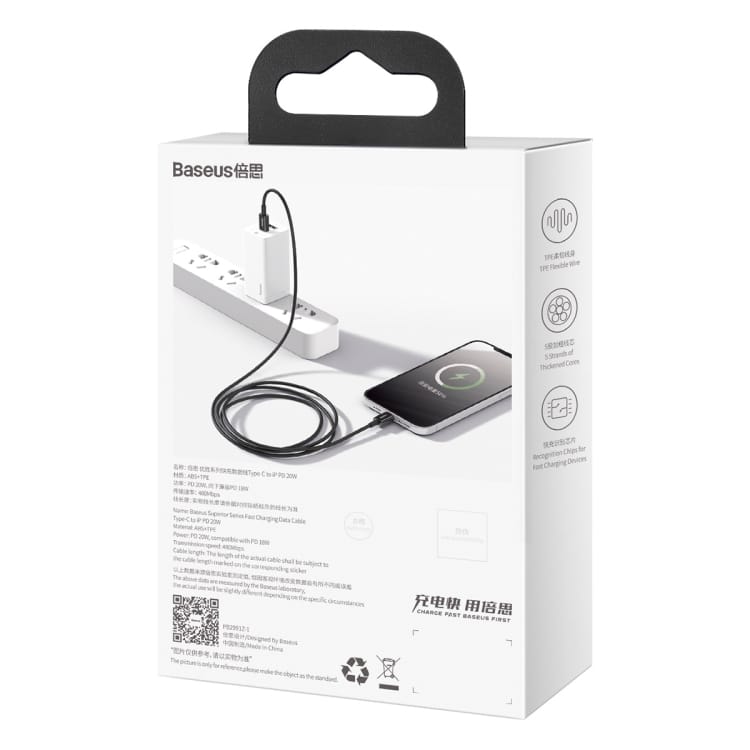 Baseus Superior Series CATLYS-A09 PD 20 W USB-C/Typ-C auf 8-Pin-Schnittstelle, Schnelllade-Datenkabel, Kabellänge: 1 m