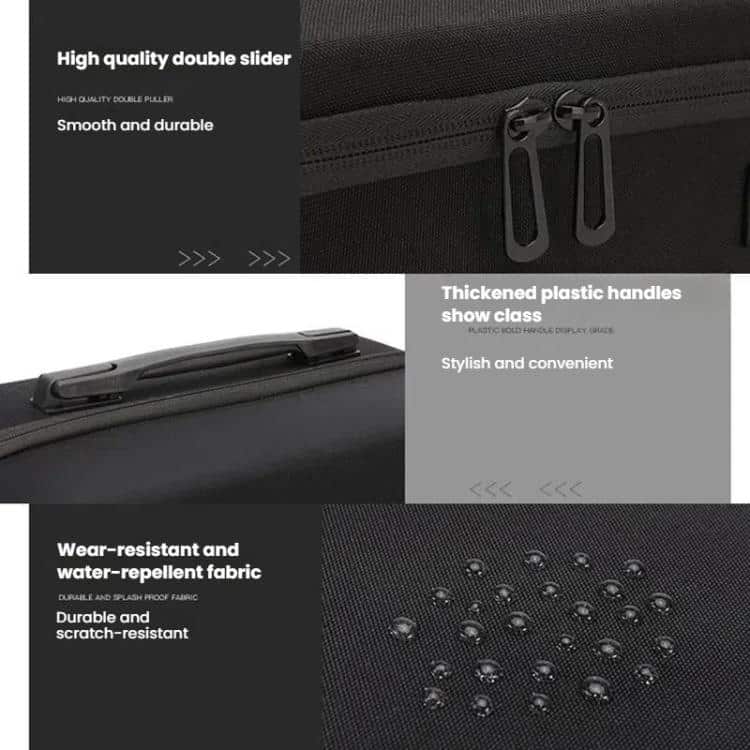 5. Empfohlenes Zubehör, robust und langlebig, nicht leicht zu beschädigen, Zwei-Wege-Reißverschluss, glatt und nicht klemmend, verstärkter Kunststoffgriff