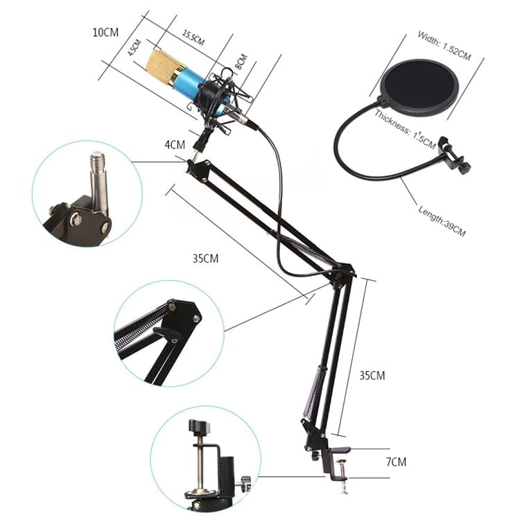1. Professionelle Ausstattung des Aufnahmestudios: Ausgestattet mit BM-800-Mikrofon, Stoßdämpferhalterung, Pop-Filter, mikrofonverstellbarem Scherenarmständer, Anti-Wind-Schaumkappe und Netzkabel.