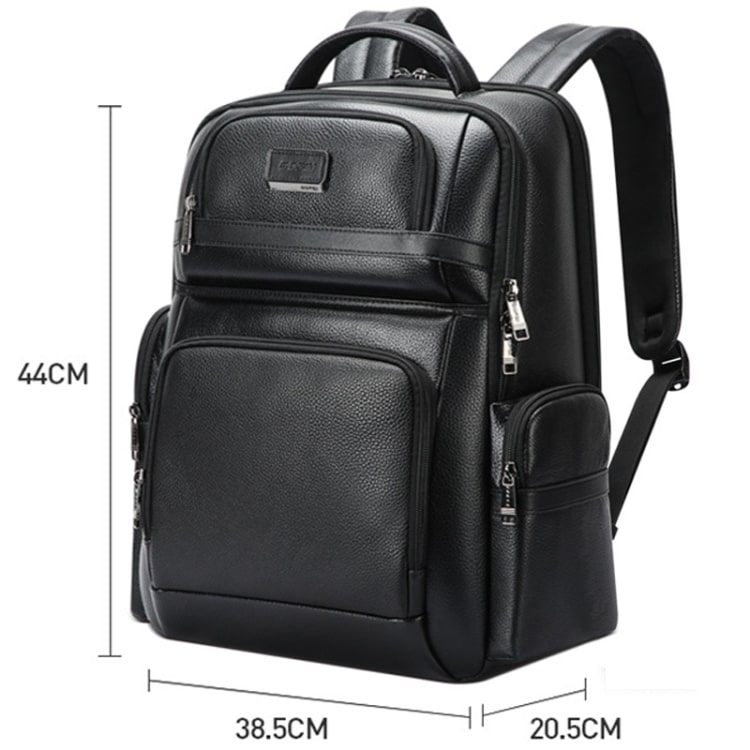 Bopai 61-123291 Laptop-Rucksack aus erstklassigem Rindsleder mit großem Fassungsvermögen und USB+Typ-C-Anschluss, Lychee Pattern, Falling Pattern