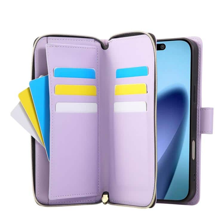 Brieftasche mit Reißverschluss und neun Kartenfächern, Leder-Telefonhülle, For iPhone 14 / 13, For iPhone 14 Pro, For iPhone 14 Pro Max