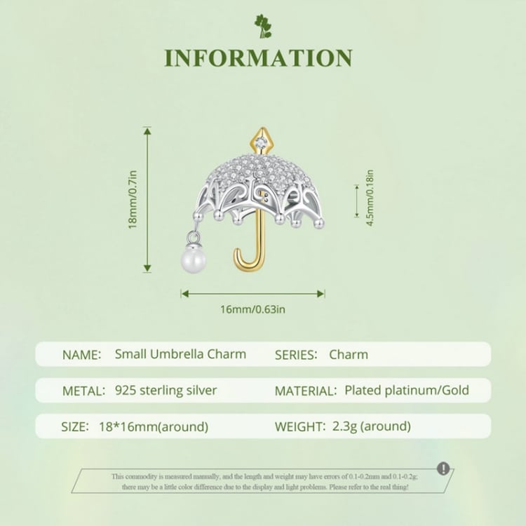 BSC862 S925 Sterling Silber Kleiner Regenschirm Anhänger Zubehör DIY Armband Perlen