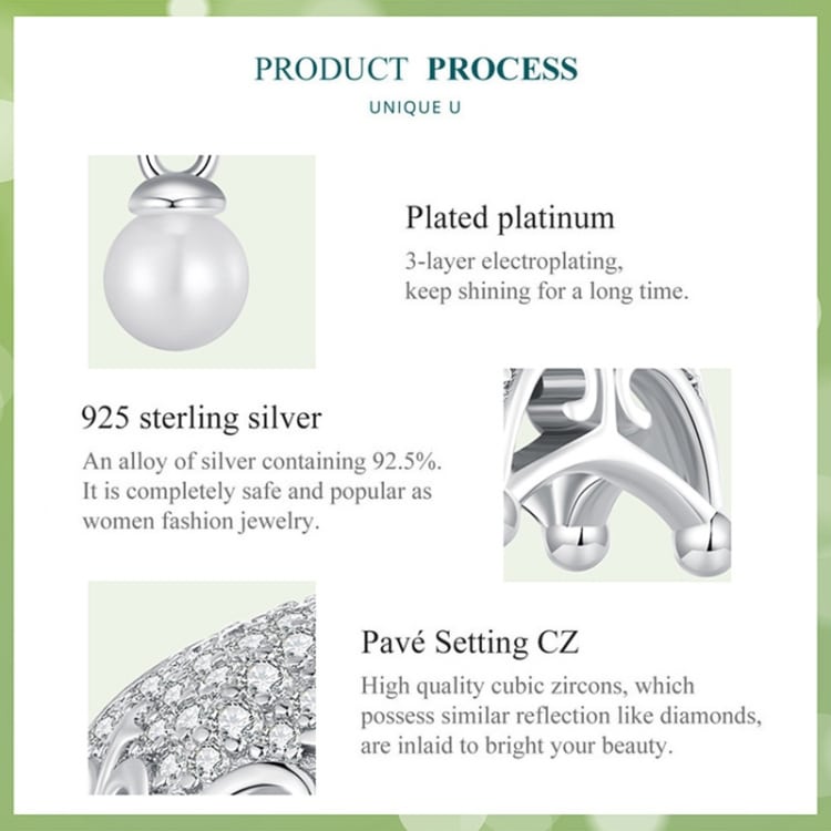 1. Material: 925er Silber + Muschelperlen + Zirkon + Platinbeschichtung + Vergoldung