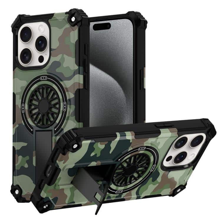 Camouflage Kickstand Rotating Shaft MagSafe Phone Case