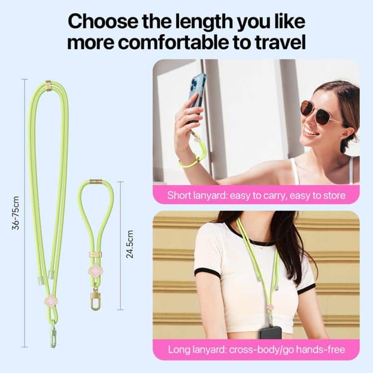 1. Multifunktionales Design: Das Umhängeband verfügt über ein Handgelenkschloss-Design, das für verschiedene Nutzungsszenarien geeignet ist, Ihre Hände frei lässt und das bequeme Tragen Ihres Mobiltelefons ermöglicht.