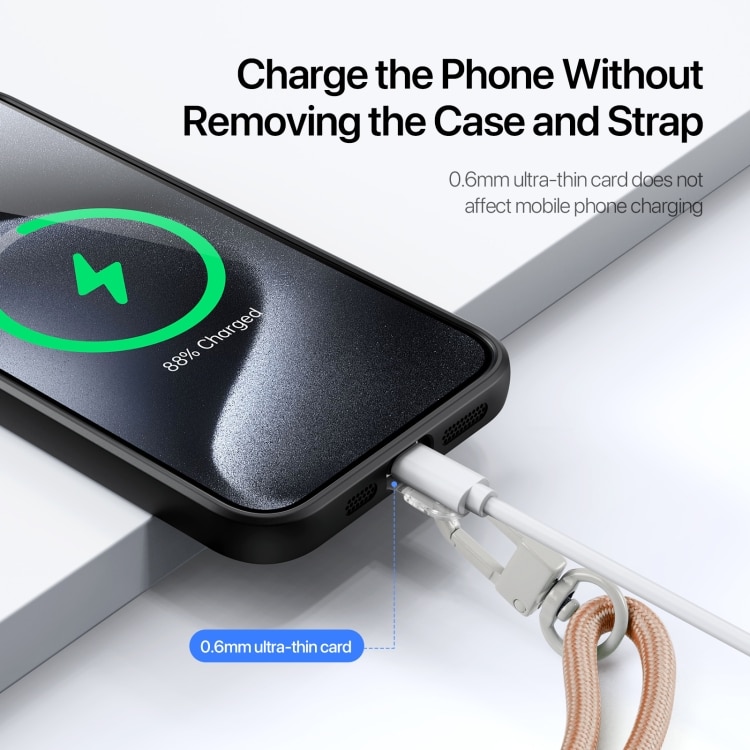1. Multifunktionales Design: Das Umhängeband kann sowohl quer über den Körper getragen als auch um den Hals getragen werden und ist für verschiedene Situationen geeignet. So haben Sie beim Tragen Ihres Telefons die Hände frei.
