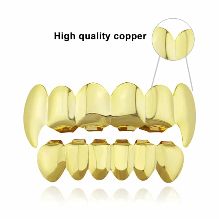 Hip Hop-Zubehör, Goldzahn-Set, echte Vergoldung, glatte obere acht, untere sechs Prothesen-Set