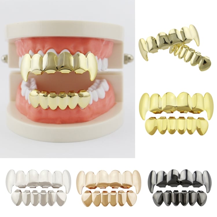 Echtgold-Galvanik-Halloween-Dekoration, Zahnersatz und Stoßzahnanzug, COS-Requisiten
