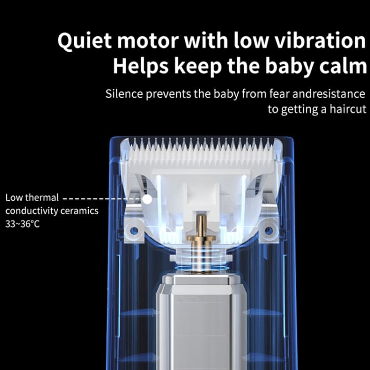 Elektrischer, wasserdichter Friseur-Kinder-Haarschneider, geräuscharm, wiederaufladbar, Push-Clipper, Digital Version White, Suction Upgrade Version White