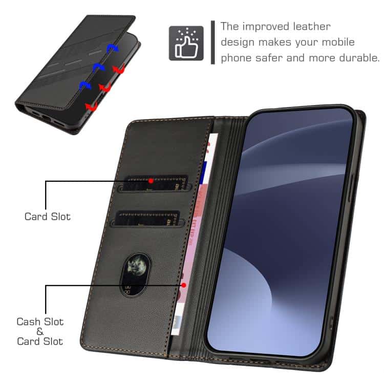 4. Brieftaschenfunktion: Die Lederhülle verfügt über Kartenfächer für Karten und Bargeld.
