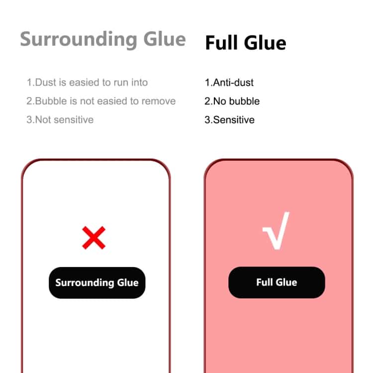 2. Beim Entfernen zur Wiederverwendung können die Klebeeigenschaften so weit nachlassen, dass die Displayschutzfolie nicht mehr am Gerät haftet. Es wird nicht empfohlen, den Glasschutz nach dem Auftragen aufzuwecken.