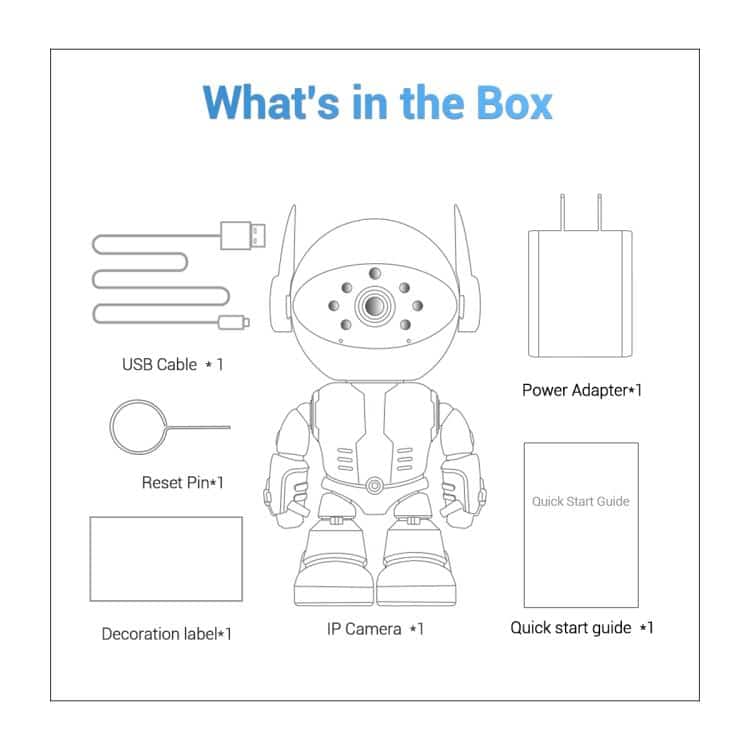 5. Zubehör: 1 x Kamera, 1 x Netzteil, 1 x USB-Kabel, 1 x Schraubenpaket, 1 x Handbuch