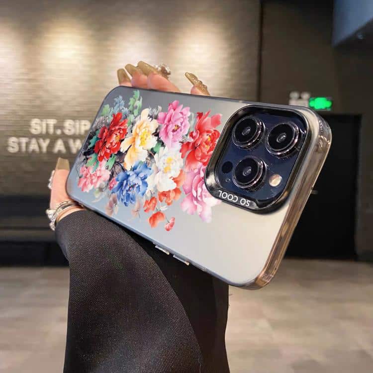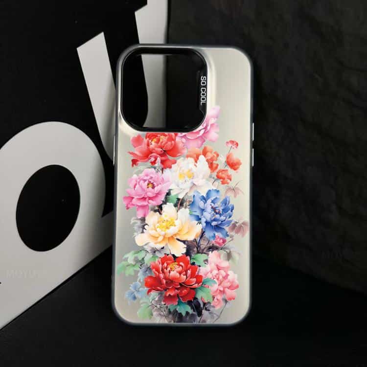 Flower Series Color Silver TPU Hybrid PC Phone Case, For iPhone 16 Pro