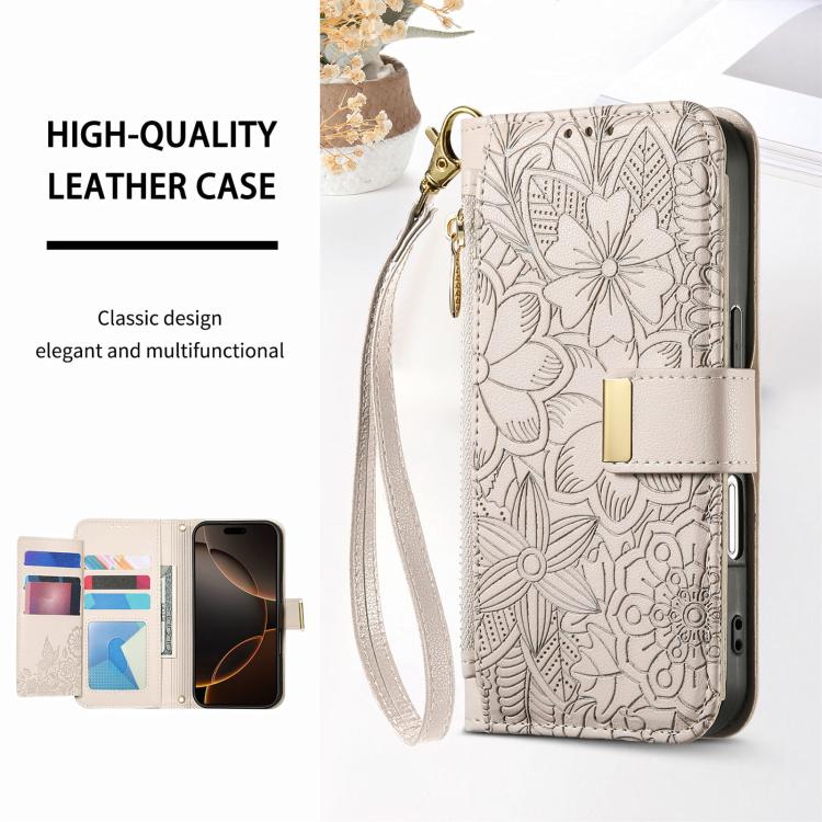 Flowers Leaves Zipper Wallet Leather Phone Case with Strap, For iPhone 15 Pro Max, For iPhone 15 Pro, For iPhone 15 Plus, For iPhone 15