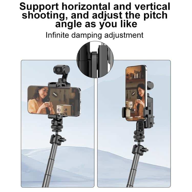 6. Doppelte Montagemöglichkeit: Diese Halterung ist speziell dafür konzipiert, sowohl Ihren OSMO Pocket 3 als auch Ihr Smartphone gleichzeitig aufzunehmen, mit dem zusätzlichen Vorteil, dass Sie Ihr Telefon als Teleprompter verwenden können.
