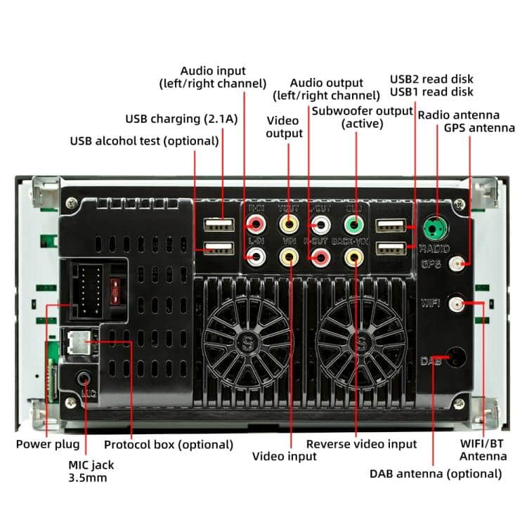 15. Unterstützt Mobiltelefonverbindung, Videowarnungswiedergabe, Videoausgabe, Offline-Karten, Fahrtenaufzeichnung (USB-Signaleingang), GPS-Navigation, externer Mikrofonanschluss, Reset-Taste